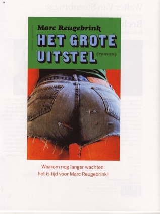 Het omslag van Het grote uitstel blijkt bij de echte estheten onder ons tot, uit beleefdheid weliswaar klein gehouden, maar toch duidelijk zichtbare woedeuitbarstingen te kunnen leiden. Een door mij hoog gewaardeerde vertaler die bij mij in de straat woont — enfin, in de straat waar mijn nog steeds niet bewoonbare bijna verbouwde huis wacht op afronding — leek zelfs op het punt te gaan kokhalzen toen hij er over begon. Zo’n meisje ‘in lordose-houding,’ zo spuugde hij bijna — hij zou alleen al vanwege de in dat beeld aan hem gerichte uitnodiging een boek met een dergelijk omslag niet kopen. Of ik dat zelf had gekozen, wilde hij weten. Dat niet. Had ik dan geen protest aangetekend. Ook niet. Ik moest mij weer beroepen op mijn romantische inborst (dit begint op koketterie te lijken) die van mij een schrijver maakt zonder werkelijk talent voor middenstandspraktijken — zodat ik dat laatste volgaarne overlaat aan een uitgever die weet dat om aandacht voor een boek te genereren er vooral niet, of in geen geval in de eerste plaats op het literaire gefocust moet worden bij een auteur die ook al geen borsten heeft, verre van hups en in de twintig is, maar integendeel de vijftig nadert en die verder op zijn vriendelijkst gezegd als op zijn minst ‘elitair’ te boek staat — of wat het dan ook maar moge wezen.