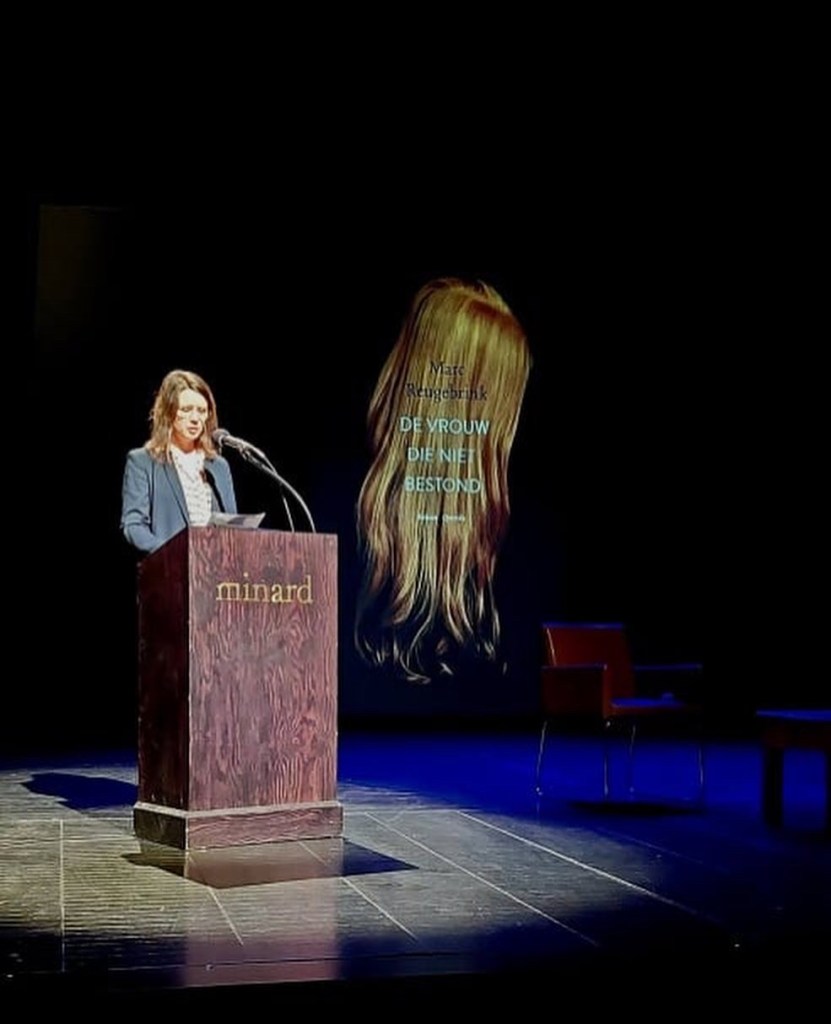 Inmiddels werd De vrouw die niet bestond gepresenteerd in de Gentse Minard Schouwburg. Het is een klein en kostbaar geluk dat de stad Gent de mogelijkheden schept om een boekpresentatie in een heus theater te organiseren, compleet met technici en barpersoneel, zonder dat je als auteur al op voorhand kapitaalkrachtig moet zijn. Zo’n avond wordt rijkelijk gesubsidieerd.