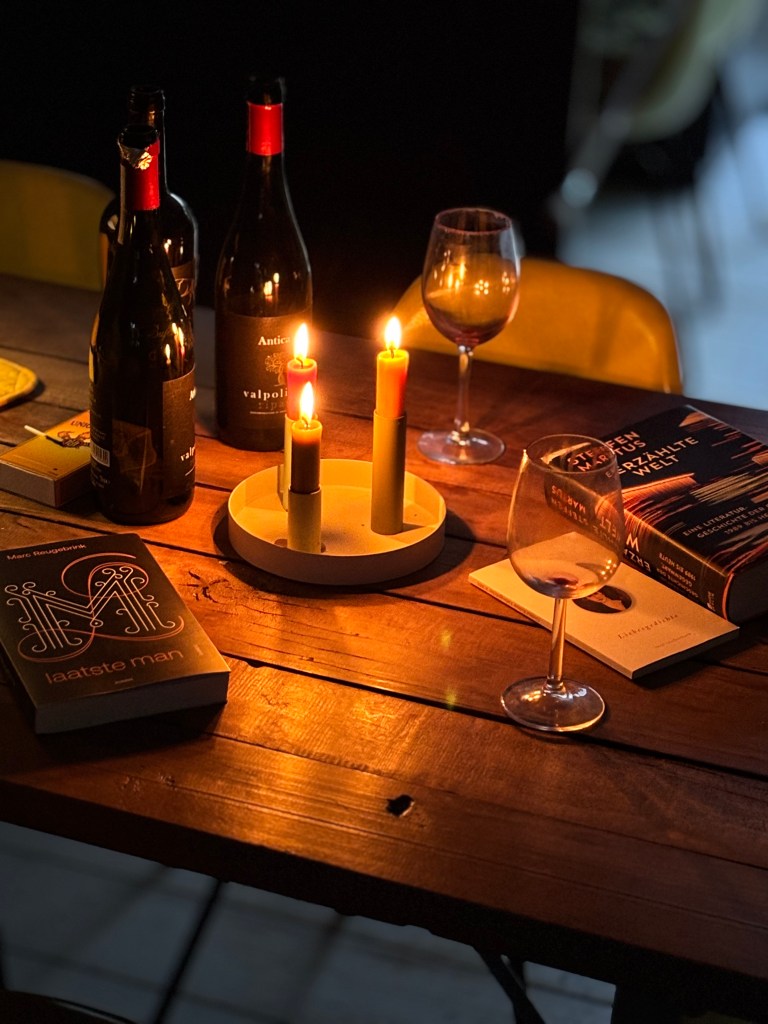 Er stond wijn op tafel. Uiteindelijk drie flessen. Dat was minstens anderhalve fles te veel. Er was ook een karaf met water. We hadden een versie van zijn dichtbundel kort besproken, want dat doen we al jaren: net geschreven werk in diverse stadia van (on)voltooidheid aan elkaar laten lezen en er commentaar op leveren. Ik had niet het gevoel dat ik veel over de bundel-in-wording moest zeggen. Ik vond de meeste gedichten, de volgorde en samenstelling eigenlijk al wel publicatiewaardig. Dat verraste hem. Hij zag het allemaal nog als een voorstadium van wat het uiteindelijk worden moet. Was het niet te veel opgeknipt proza? Het waren geen op ritme en rijm gerichte teksten, nee, maar in elke tekst zit een draai die maakt dat hij afwijkt van wat een prozatekst zou zijn. Bovendien ontroerden veel van de gedichten mij.